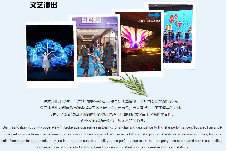 桂林江山會議會展有限責(zé)公司是一家專業(yè)的MICE公司;是傳統(tǒng)服務(wù)與信息技術(shù)相結(jié)合的科技型公司。 公司立足于線下活動的豐富經(jīng)驗(yàn),堅(jiān)持運(yùn)用信息技術(shù)為各類活動(項(xiàng)目)提供更優(yōu)質(zhì)與便捷的管理與服務(wù)。公司開發(fā)的《冬瓜云服務(wù)與管理系統(tǒng)》《雙線展覽平臺》《注冊通》《報(bào)到通》《多點(diǎn)位全景直播平臺》等應(yīng)用軟件處于行業(yè)領(lǐng)先地位。桂林江山會議是一個大家庭,于2012年創(chuàng)立,經(jīng)過長期的經(jīng)營,吸納與培訓(xùn)了大批關(guān)于會務(wù)服務(wù)、設(shè)計(jì)創(chuàng)意、公關(guān)演藝、會獎活動、信息技術(shù)等項(xiàng)目的眾多專業(yè)人材,涉及展覽工程搭建、慶典活動策劃、影視制作與直播、大型文藝演出、會獎旅游、H5、小程序等軟件的開發(fā)等眾多業(yè)務(wù)。江山會議由一支具有超前的營銷理念并...